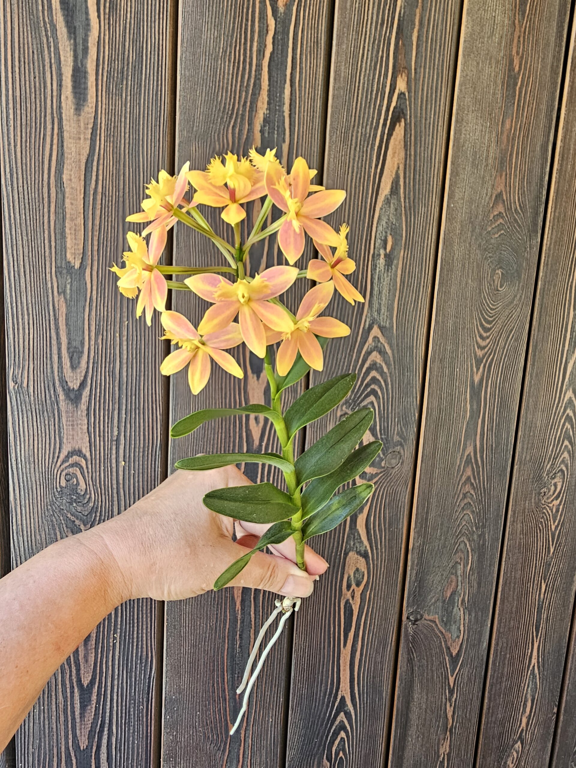 Рассада радужного эпидендрума. Пересадка не нужна, сейчас на укоренении. Не цветущие черенки. Требуется только полив. Размер горшка в дюймах 2.5″ эта красивая орхидея для солнечного окна (солнцепека избегать) очень продолжительно цветет наращивая на уже имеющимся цветоносе новые бутоны. нетребовательна, хорошо переносит пересушки как просто фаленопсис, но их конечно, лучше избегать. На втором фото представлено общее фото как растёт и выглядит растение. Мы предлагаем молодые саженцы примерно по 10 см, укоренные растения. растения растут быстро, не забывайте в теплый сезон подкармливать жидкими удобрениями для орхидей. Я всем рекомендую завести нетребовательную орхидеи с необычными цветками в свою коллекцию.